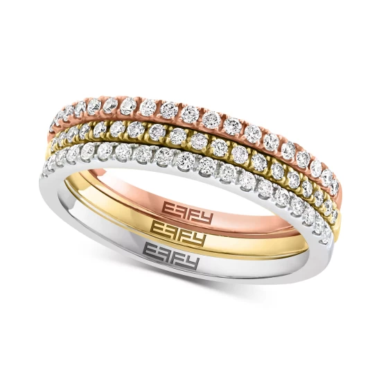 This set of three tricolor gold stackable diamond rings from EFFY® can be mixed or matched together, or with your personal rings to customize your look