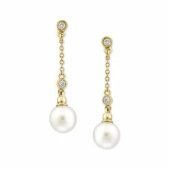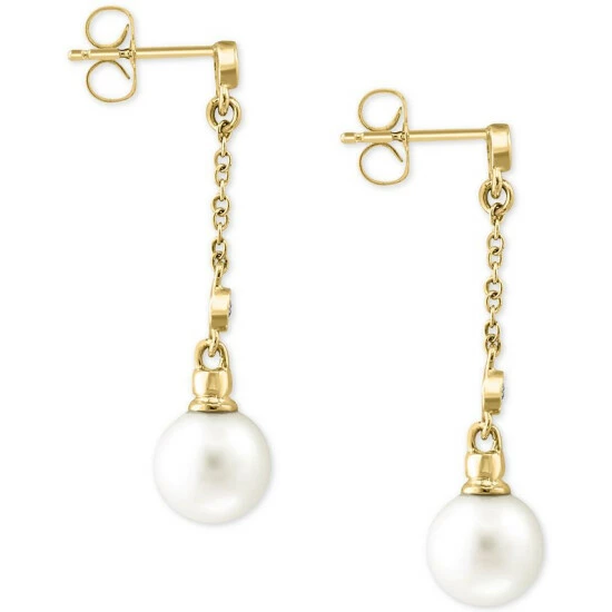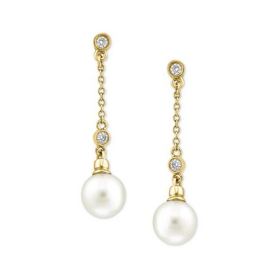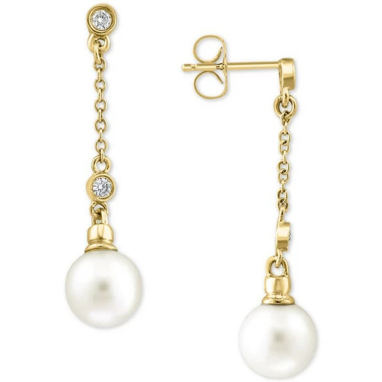 Be the essence of glamour in these beautiful Akoya pearl drop earrings from EFFY®, accented with beautiful bezel-set diamonds.