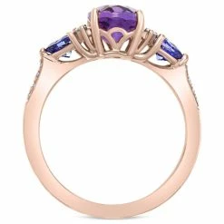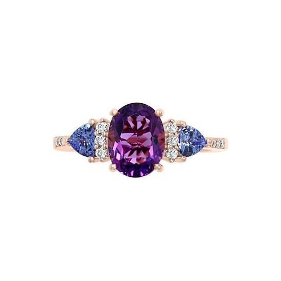 Color your style with the exceptional beauty of this oval-shape amethyst and trillion-shape tanzanite statement ring, designed by EFFY® with gorgeous diamond accents.