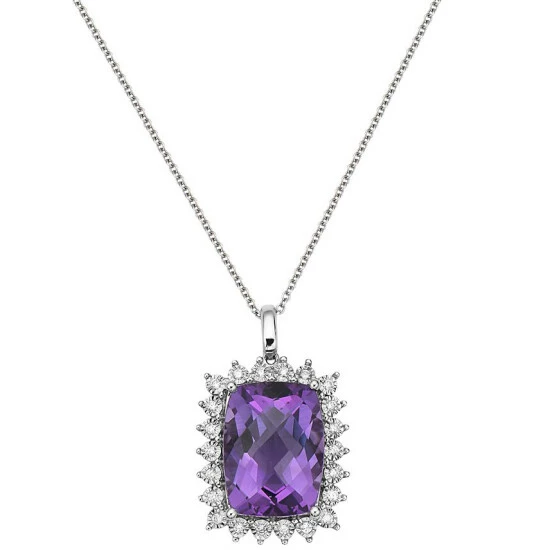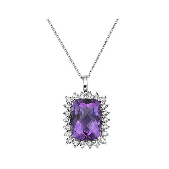 The royal purple of amethyst is emboldened by a halo of diamonds in this beautiful EFFY® pendant necklace.