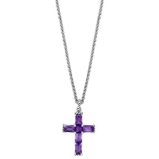 Breathtaking square and emerald-cut amethysts decorate this beautiful sterling silver cross pendant necklace from EFFY®.