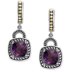 Breathtaking cushion-cut amethyst dangle from two-tone hoops in these mega-stylish drop earrings from EFFY®.