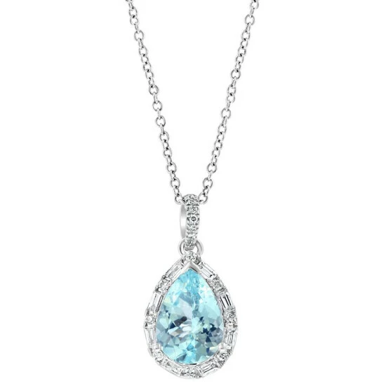 EFFY® paints a picture of ethereal elegance with this beautiful pear-cut aquamarine pendant necklace accented with a halo of round and baguette diamonds.