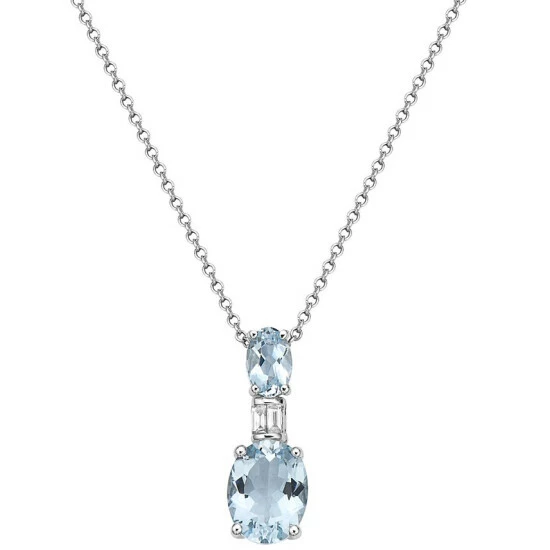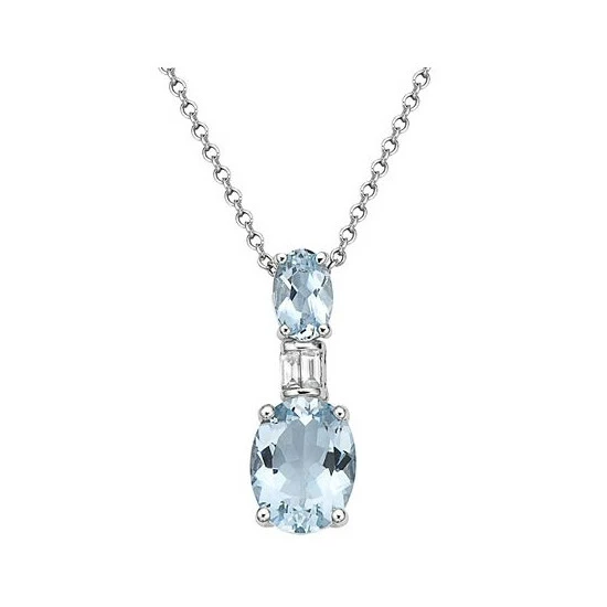 Graceful oval-cut aquamarine gemstones are separated by diamond baguettes in this beautiful pendant necklace from EFFY®.