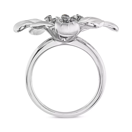 Textured petals and the sparkle of black and white diamonds breathe life into this sculptured flower ring from EFFY®