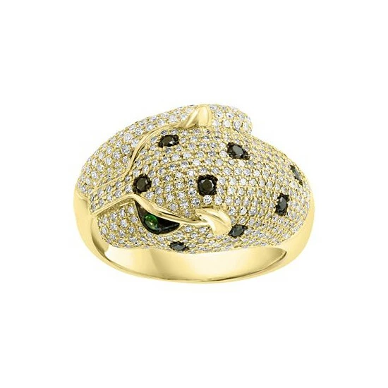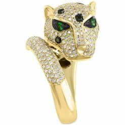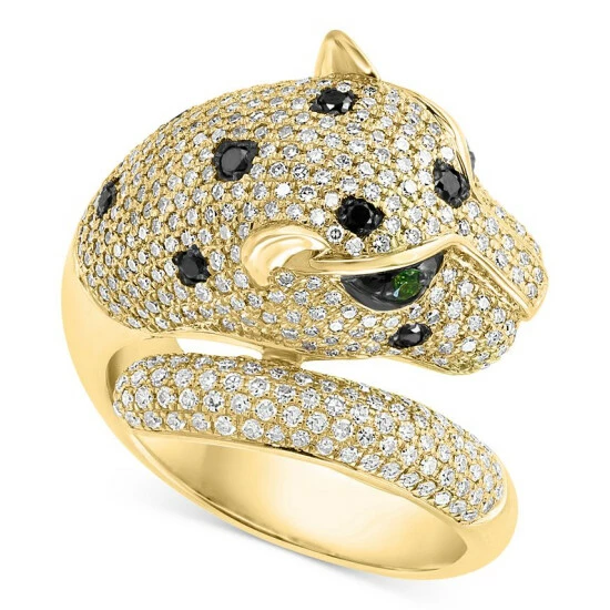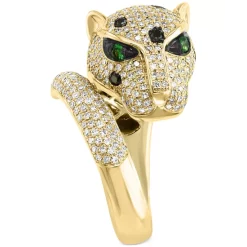 EFFY® lets you express your wild side with this black and white diamond panther wrap ring, with deep green tsavorite eyes.