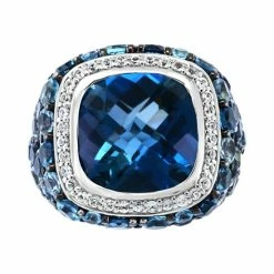 A breathtaking combination of London, Swiss, and sky blue topaz gemstones are accented with white sapphires in this beautiful silver statement ring from EFFY®.