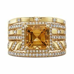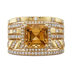 Set on an openwork ring with an array of diamond infused crisscrossing rows, is a bold and dramatic square-cut citrine in this oh-so stylish ring from EFFY®.