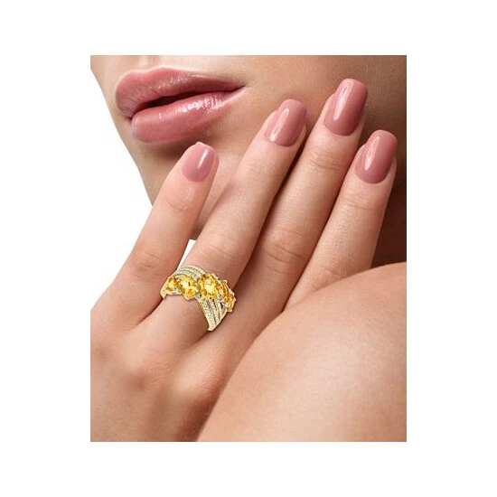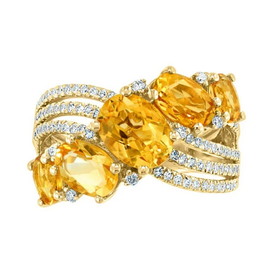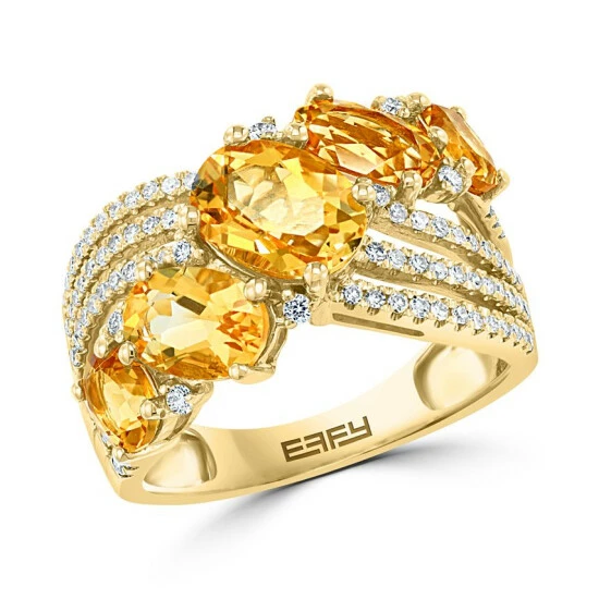 Bold, beautiful citrine gemstones crossover luxurious rows of diamonds in this dramatic statement ring, designed by EFFY®.