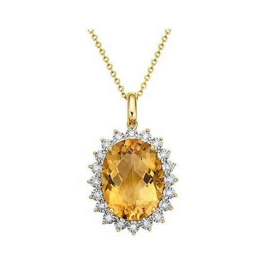 Spread the sunshine elegance of this citrine and diamond halo sun-inspired pendant necklace from EFFY®