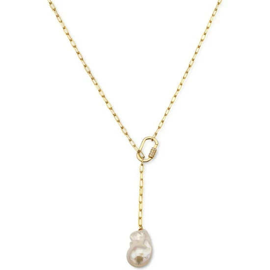 Be chic and modern with this elegant cultured freshwater baroque pearl lariat necklace with decorative white topaz pavé.