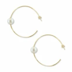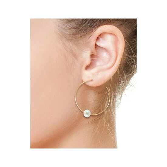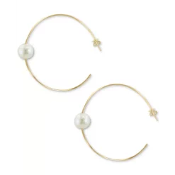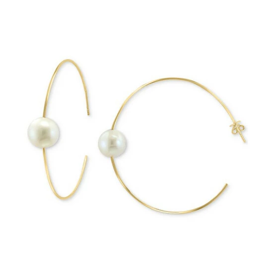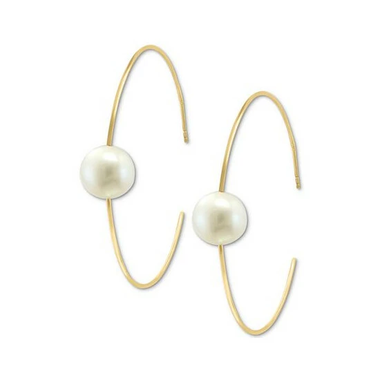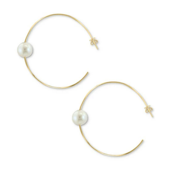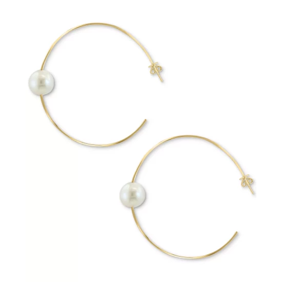 Cultured freshwater pearls add a graceful sheen to medium polished hoop earrings from EFFY®.