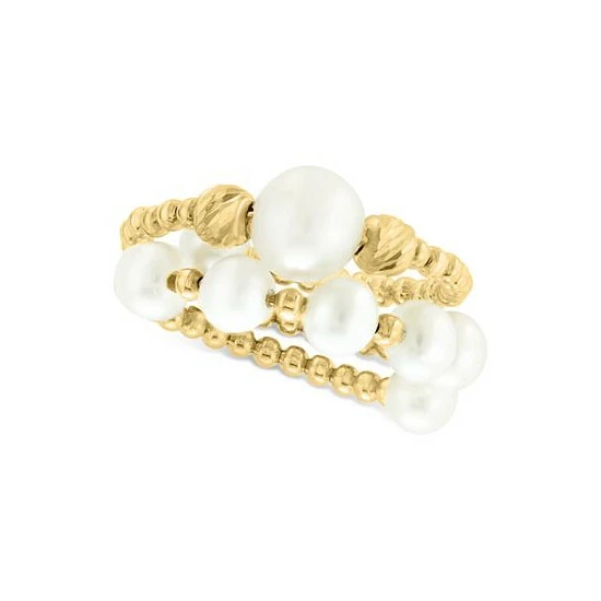 Quintessential style is achieved with this fashion forward cultured freshwater pearl and bead coil ring from EFFY®.