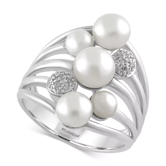 Clusters of cultured freshwater pearls (4mm-6.5mm) and diamond accents adorn this polished ring from EFFY, set in sterling silver.
