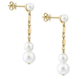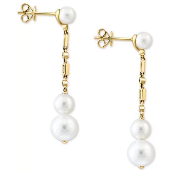 Add a dash of luxury with these beautiful cultured freshwater pearl drop earrings, dangling from chains of round and baguette diamonds – from EFFY®.