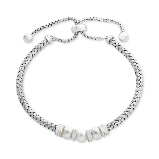 High-style design meets classic pearl beauty in this EFFY cultured freshwater pearl (6mm) bolo bracelet set in sterling silver. Bolo clasp. Approximate adjustable length: 9″.