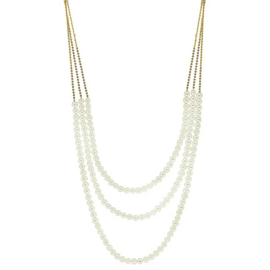 Luxurious rows of cultured freshwater pearls are paired with polished gold link chains in this elegant layered necklace from EFFY®