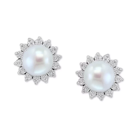 EFFY® delivers classic elegance with these cultured freshwater pearl and diamond halo stud earrings.