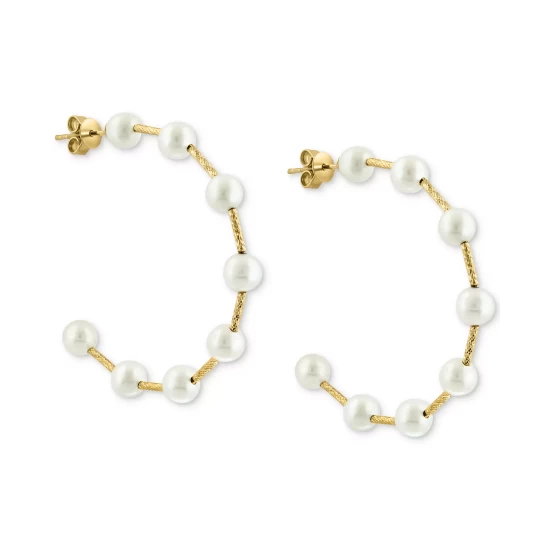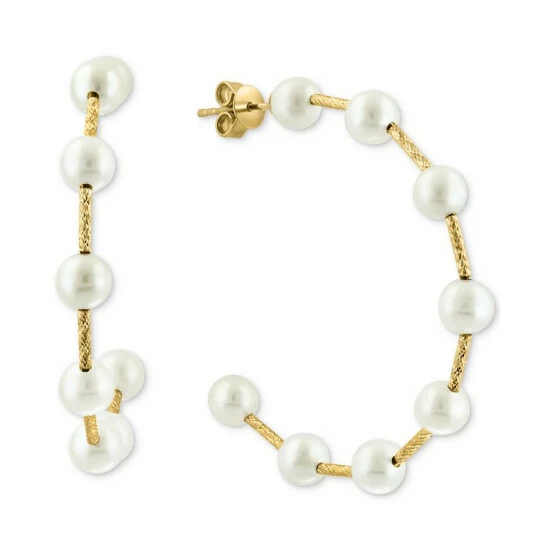 Transcend trends in these timeless cultured freshwater pearl hoop earrings from EFFY®.