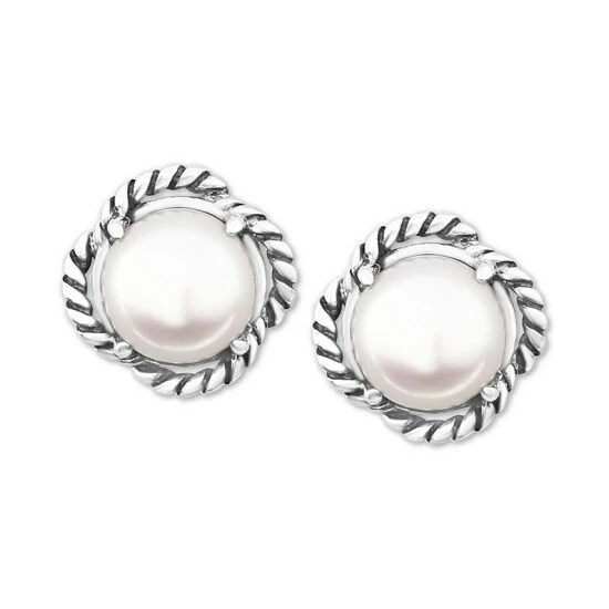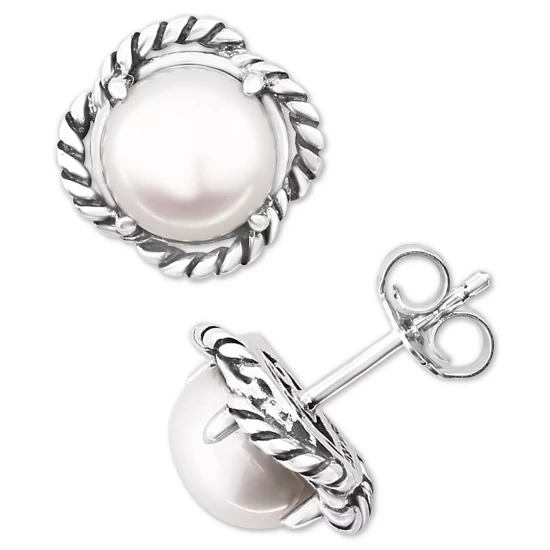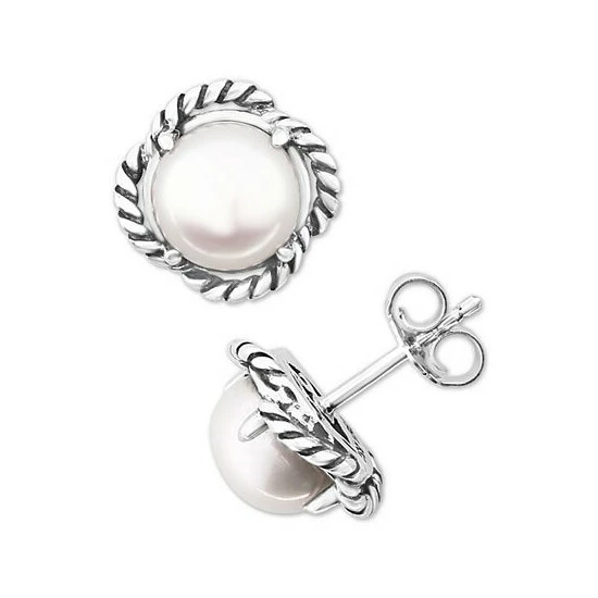 The classic beauty of cultured freshwater pearls is given a millennial makeover with an edgy silver rope design in these striking stud earrings from EFFY.