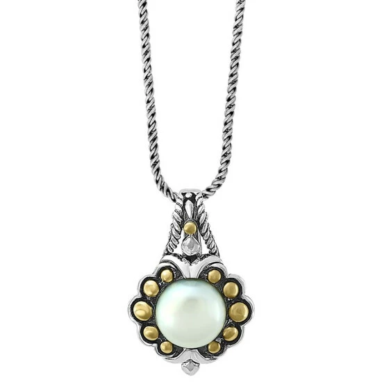 A beautiful cultured freshwater pearl is nestled in a chic and stylish two-tone setting on this pendant necklace designed by EFFY.
