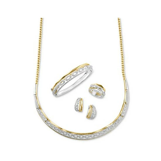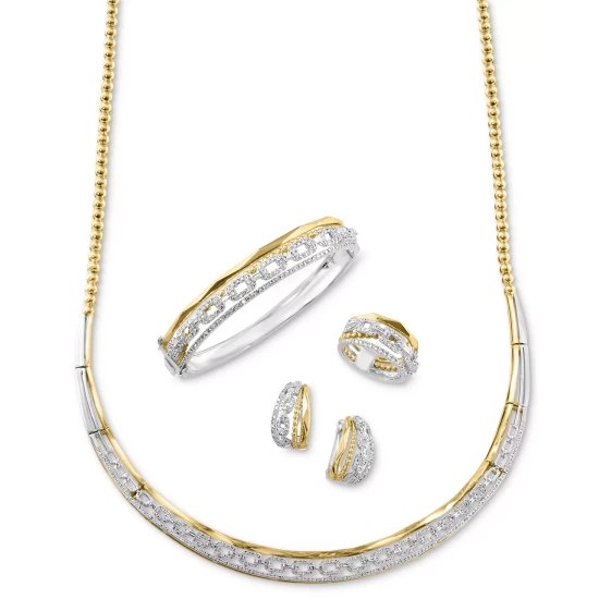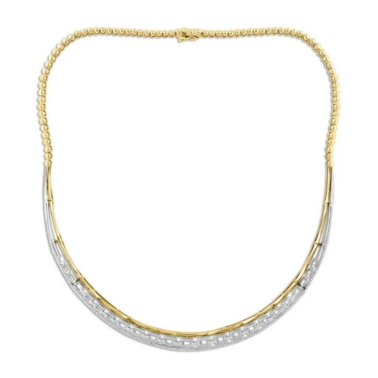 A beautiful white gold chain-link design is encrusted with diamonds and paired with polished yellow gold in this dramatic statement necklace from EFFY®.