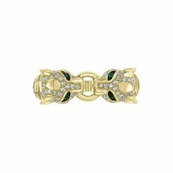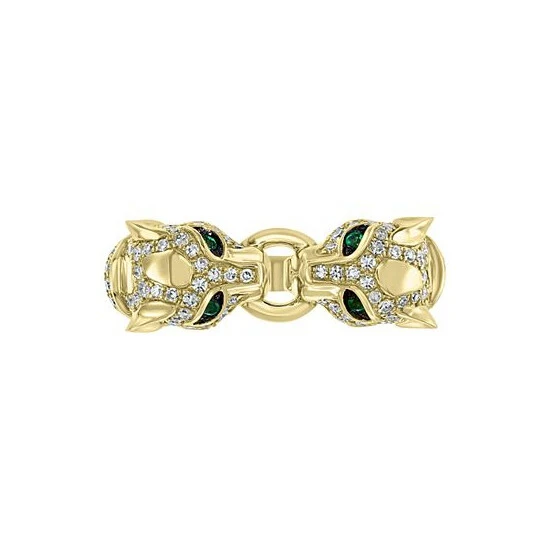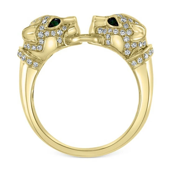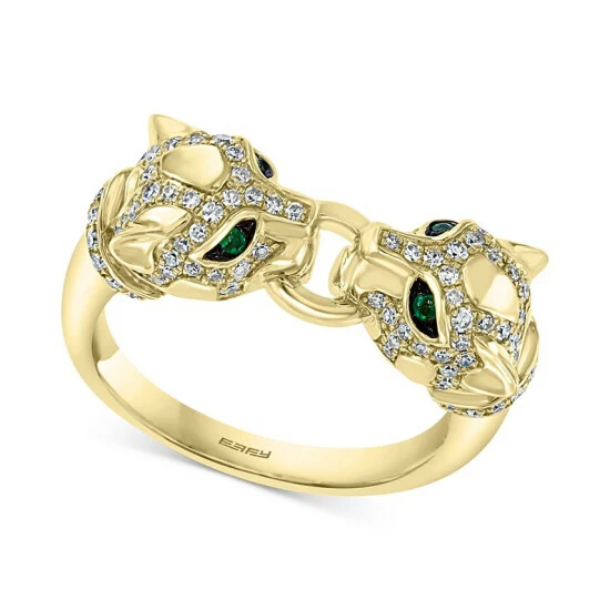 Deep green emerald eyes glow from within diamond panther heads on this iconic statement ring from EFFY®.