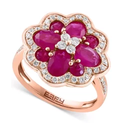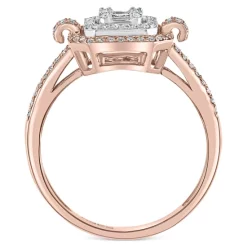 An elegant cluster of baguettes is embraced by a double halo of round-cut diamonds on this spectacular two-tone ring from EFFY®.