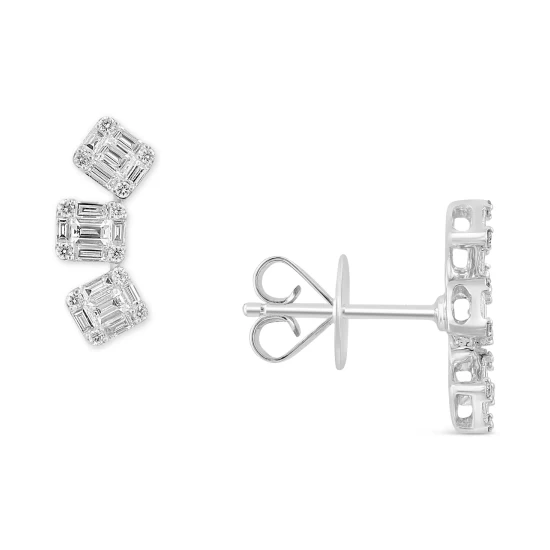 Mini clusters of round and baguette diamonds are set in an elegant curve on these gorgeous stud earrings from EFFY®.