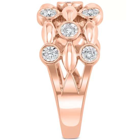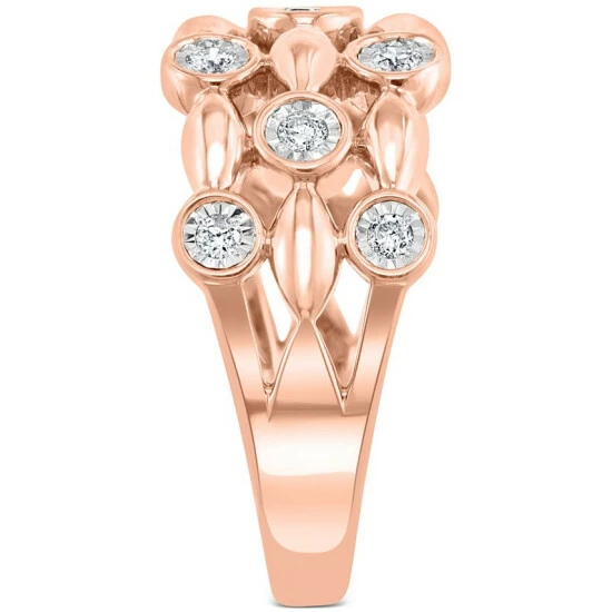 Understated, but oh-so elegant, this beautiful rose gold ring from EFFY® is designed with an openwork concept adorned with beautiful bezel-set diamonds.