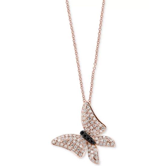 A sparkling white and black round-shape diamond butterfly floats along a fine open-link chain in this elegant pendant necklace (1/2 ct. t.w.) created by EFFY® in 14k rose gold. Approximate length: 18″. Approximate drop: 3/4″.