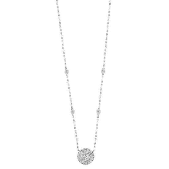 A dazzling diamond cluster is at the center of this beautiful EFFY® pendant necklace with additional bezel-set diamonds decorating the fine cable link chain.