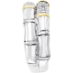 An artistic two-tone bamboo theme adds unique detail to this gorgeous diamond statement ring from EFFY®.