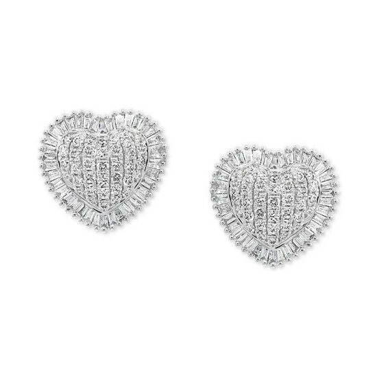 EFFY® lets love shine with these beautiful heart-shaped cluster stud earrings, framed by gorgeous diamond baguettes.