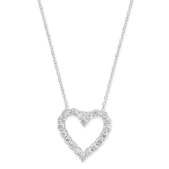 Isn’t it romantic? Dazzling diamonds are set in a gleaming silver heart on this beautiful pendant necklace from EFFY®.