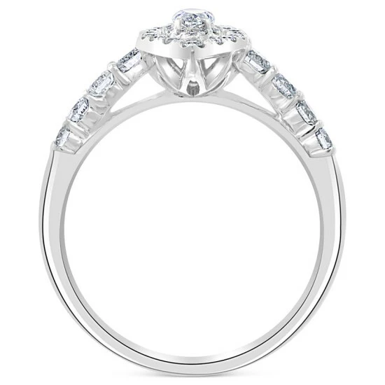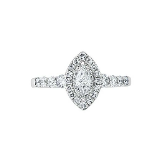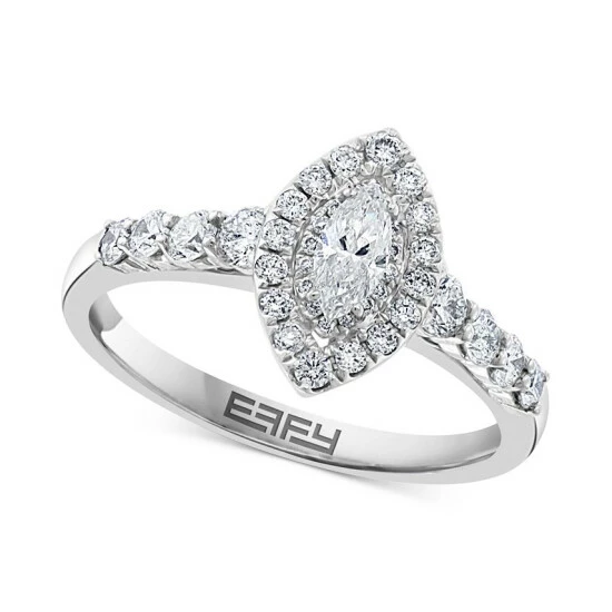 Start your life together with brilliance and shine with this EFFY® diamond engagement ring, designed with a marquise-cut center diamond, embraced by a halo, with addition diamonds along the white gold shank.