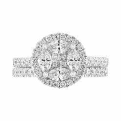 EFFY® delivers utter elegance and over-the-top sparkle with this stunning diamond bridal set. The engagement ring is set with a center cluster of princess-, marquise-, and round-cut diamonds. Brilliant accent diamonds are set along its shank and incorporated into the fitted wedding band.