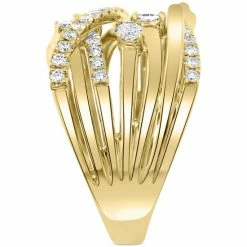 Dual ribbons of round-cut diamonds cross over polished gold rows of this EFFY® ring, randomly set with marquise-, square-, emerald-, and pear-cut diamonds.