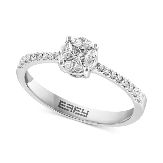 EFFY® is known for creatively built silhouettes, with this ring featuring a seemingly solitary center comprised of princess- and marquise-cut diamonds.
