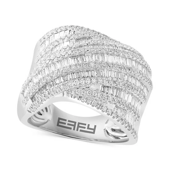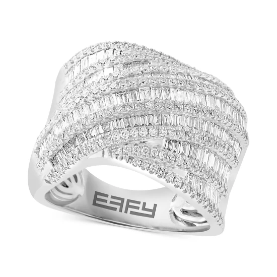 Next-level elegance exudes from this bold baguette and round-cut diamond EFFY® ring, set in a daring multirow crossover design.