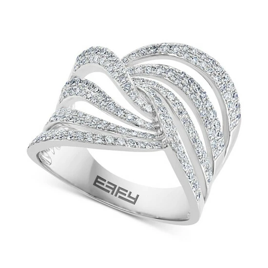 Update your look with the exceptional style of this EFFY® openwork wave ring, designed with dazzling diamonds in 14k white gold.