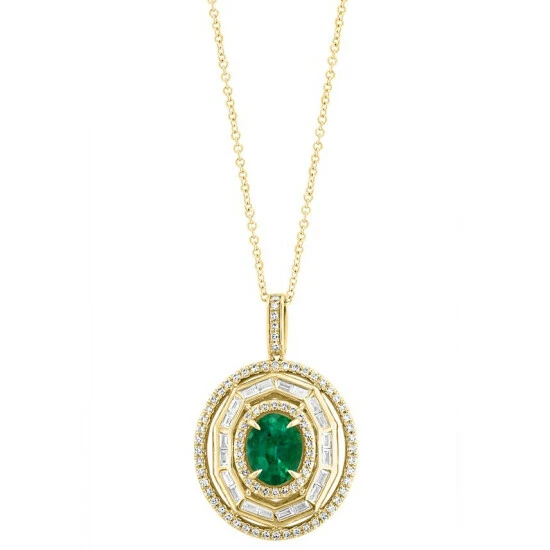 Slip on enchantment each time you wear this stunning EFFY® pendant necklace, set with an oval-cut emerald embraced by halos of round and baguette diamonds.