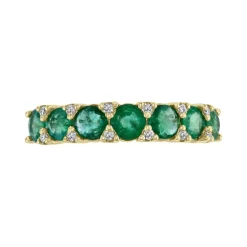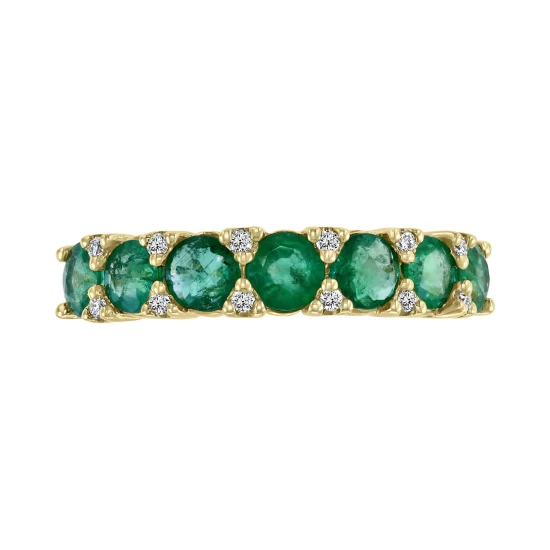 A line of gorgeous green emeralds is interspersed with diamonds in this glamorous statement ring from EFFY®.