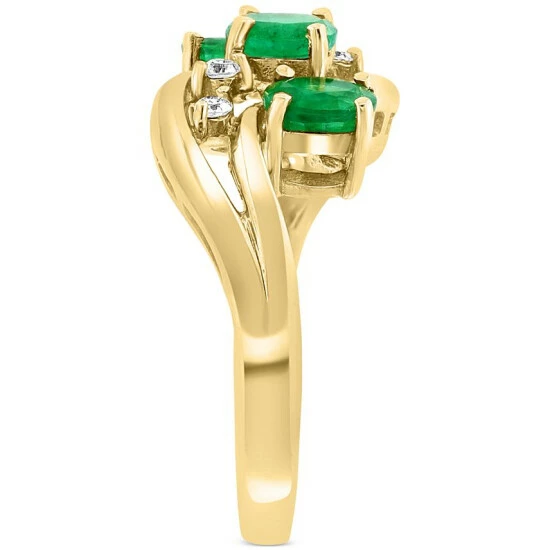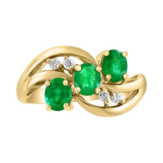 Infuse your look with color and shine with this beautiful EFFY® ring set with a trio of oval-cut emeralds, accented by diamonds in a classic swirl design.