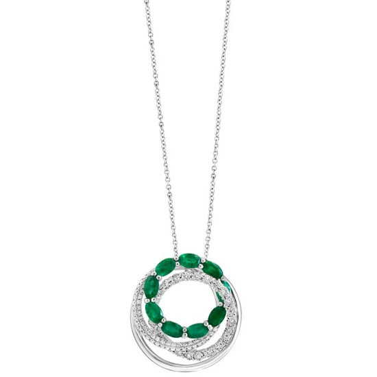 Emerald, diamond and polished white gold rings are brought together to create this elegant and whimsical pendant necklace from EFFY®.