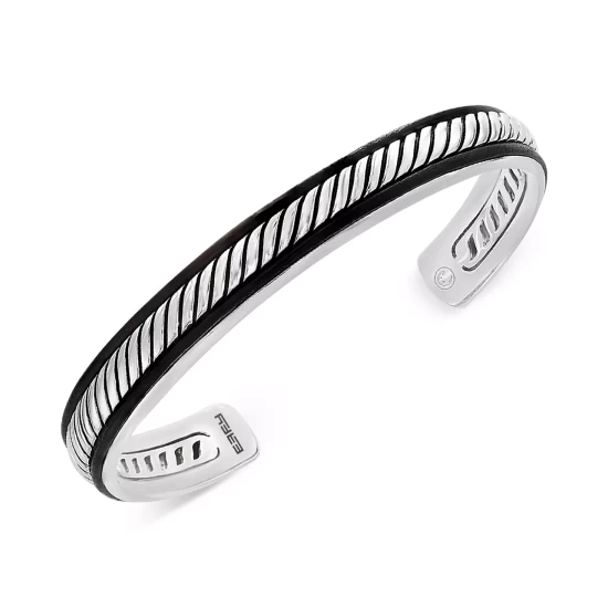 Put a cool edge to your look with this etched silver bangle bracelet with leather trim – from EFFY®