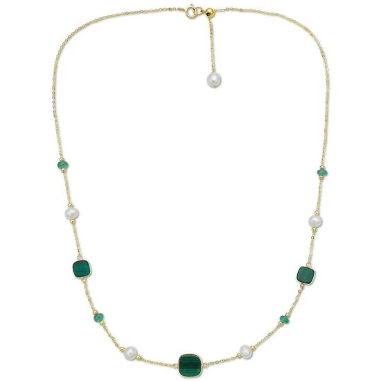 This stunning collar necklace shimmers with malachite, emerald and freshwater pearls – from EFFY®