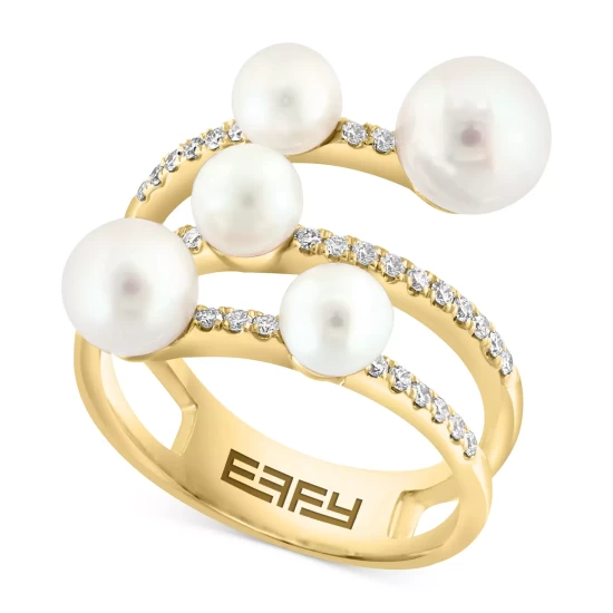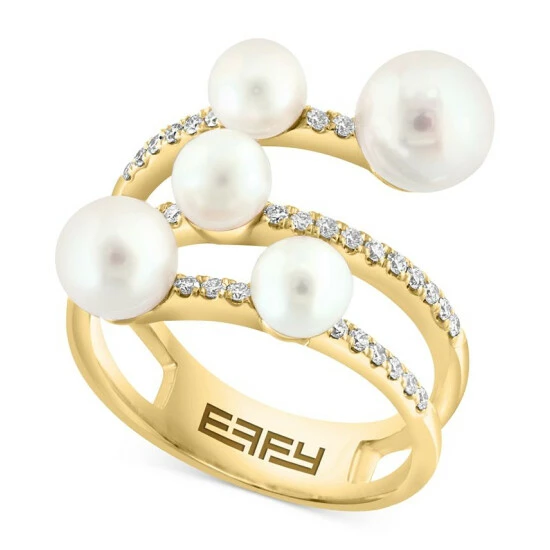 This stunning coil ring from EFFY® glistens with gorgeous diamonds and lustrous freshwater pearls.