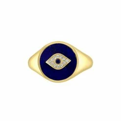 A sparkling sapphire and diamond accent evil eye is set within a lapis lazuli inlay, on this striking EFFY® ring in polished 14k gold.