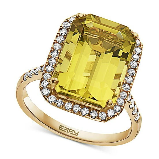 EFFY® ups the glam factor with this daring lemon quartz and diamond halo ring.
